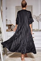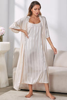 Striped Flounce Sleeve Open Front Robe and Cami Dress Set