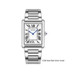 Color: 1108 steel belt silver, 1108 belt black medium, 1108 coffee leather belt medium, 9031 belt Black small size, 9031 coffee leather belt small size in coffee small size