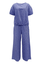 Full Size Plaid Round Neck Half Sleeve Top and Pants Set