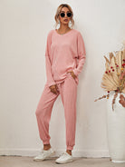 Full Size Round Neck Dropped Shoulder Top and Joggers Lounge Set