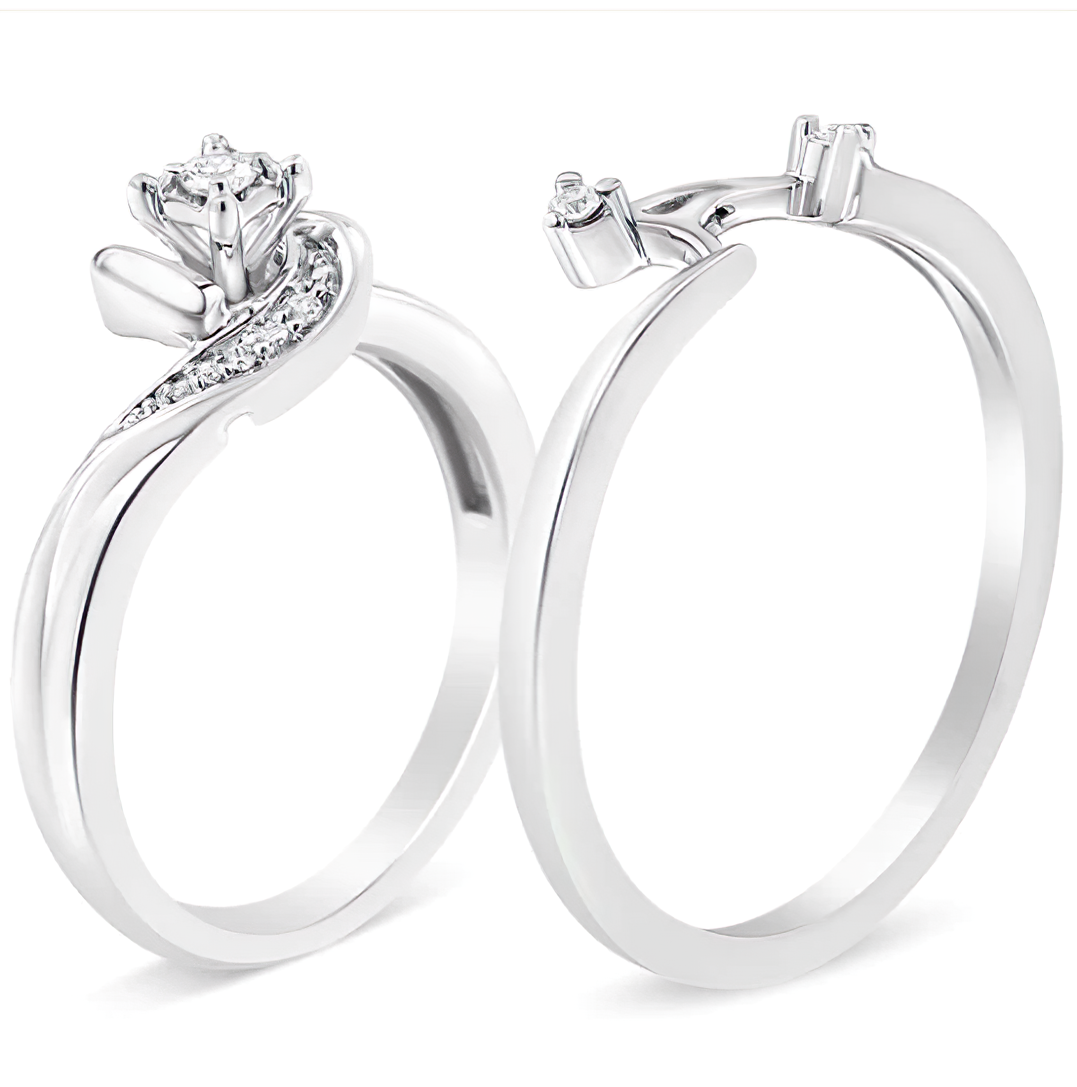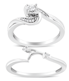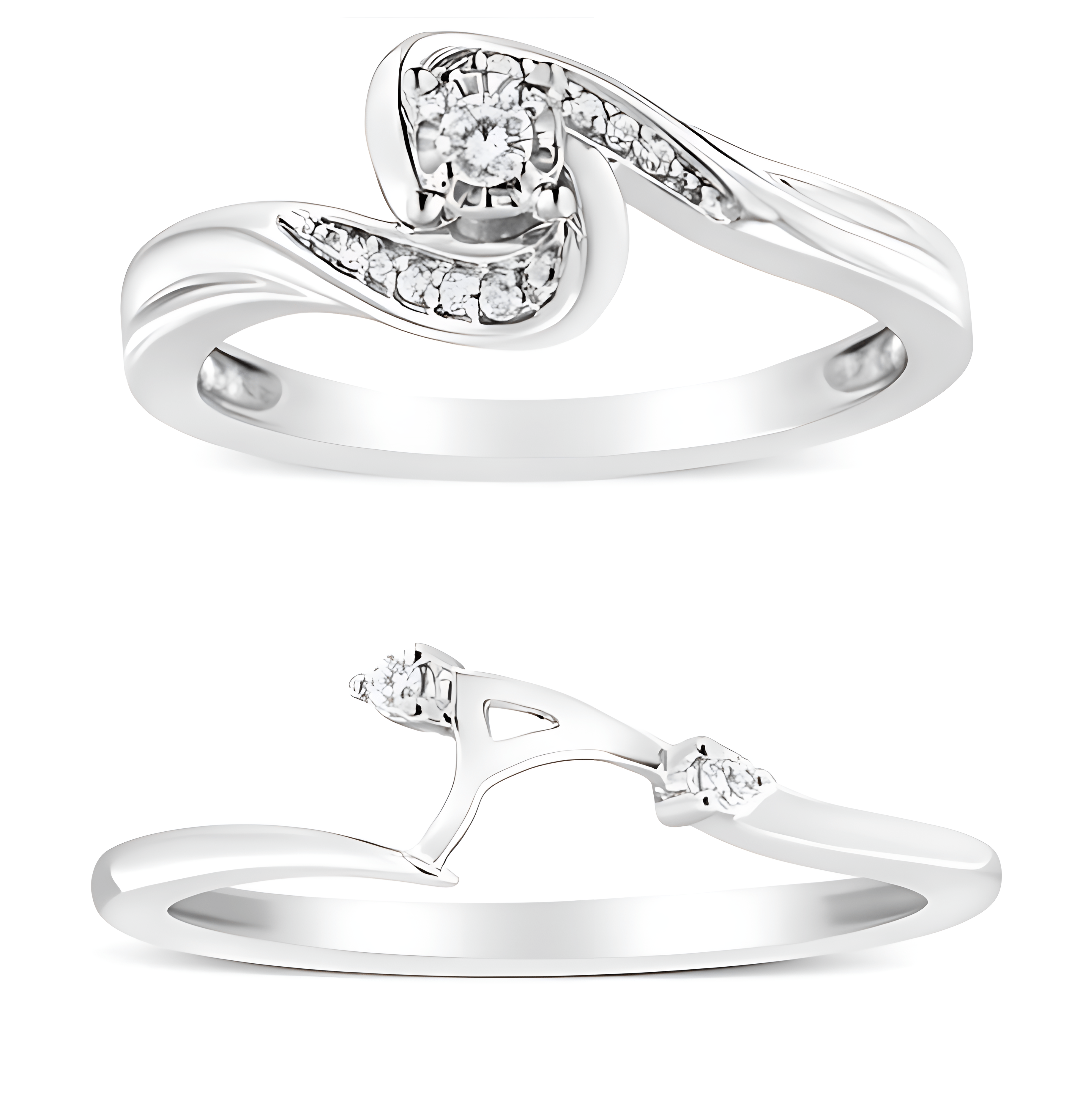 .925 Sterling Silver 1/10 Cttw Diamond Swirl and Bypass Bridal Set Ring and Band (I-J Color, I3 Clarity)
