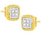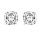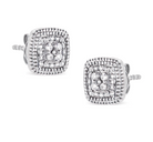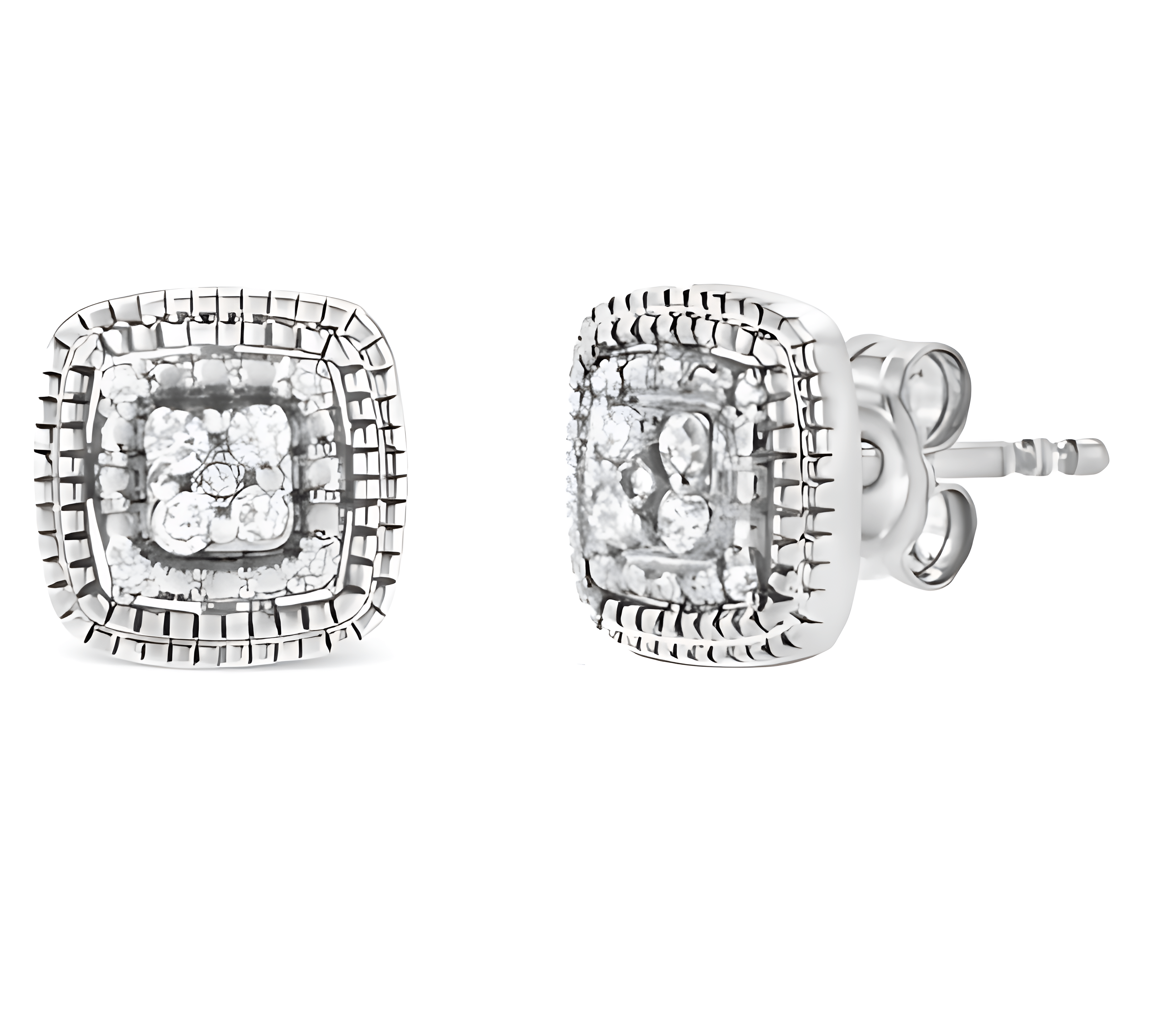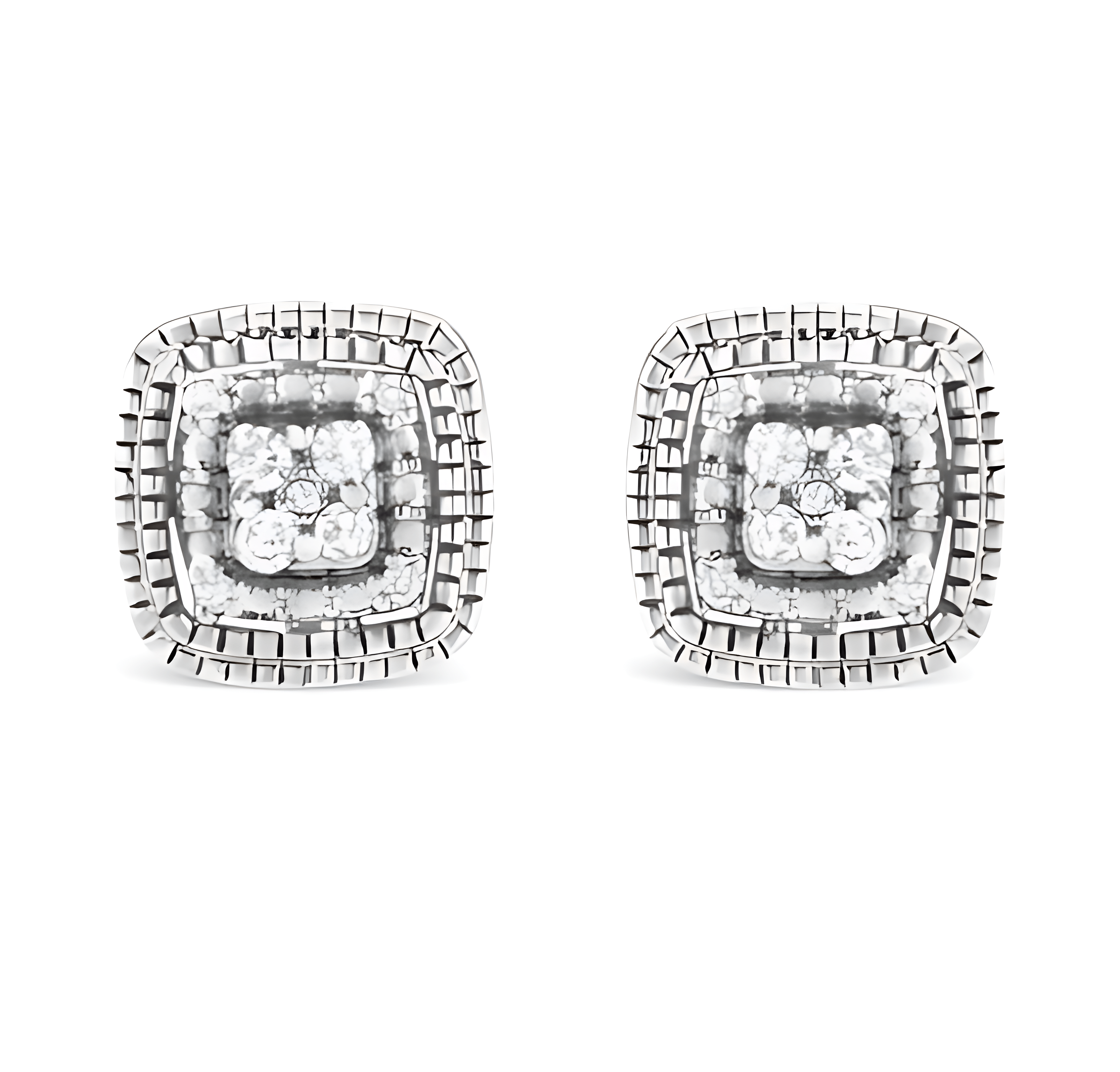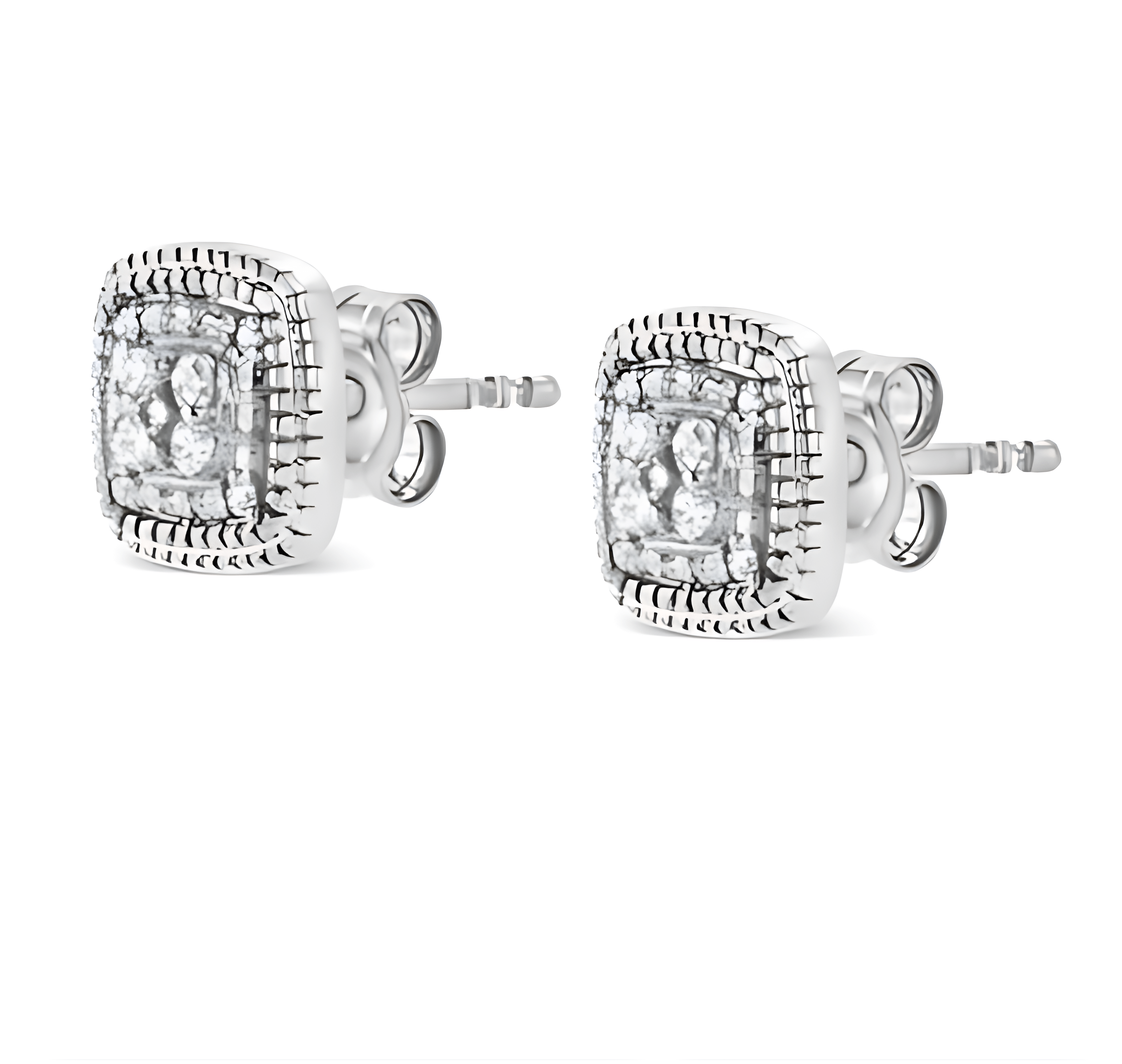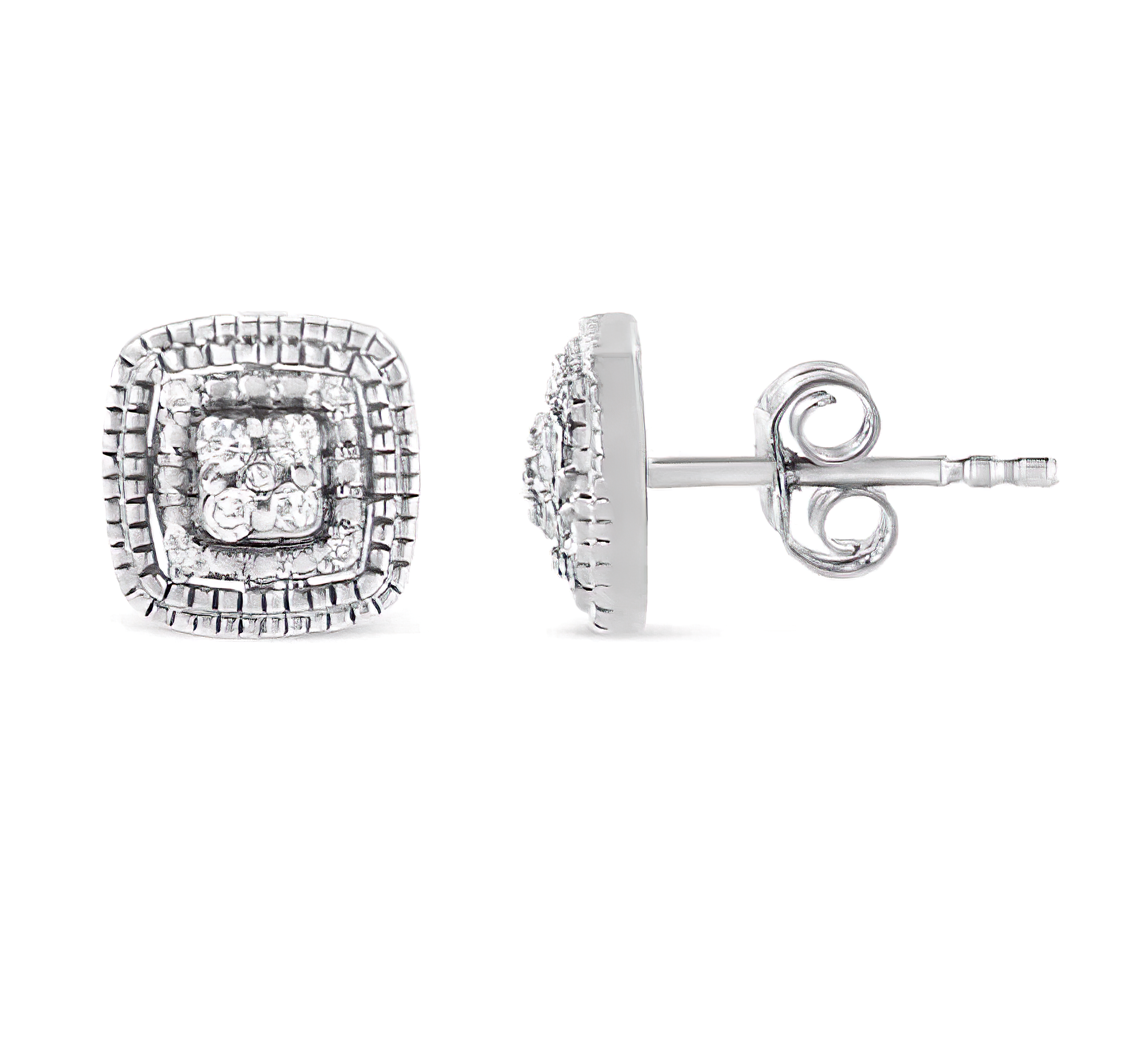 .925 Sterling Silver 1/10 Cttw Prong-Set Round Cut Diamond Square Shape with Milgrain Halo Stud Earrings (I-J Color, I2-I3 Clarity)