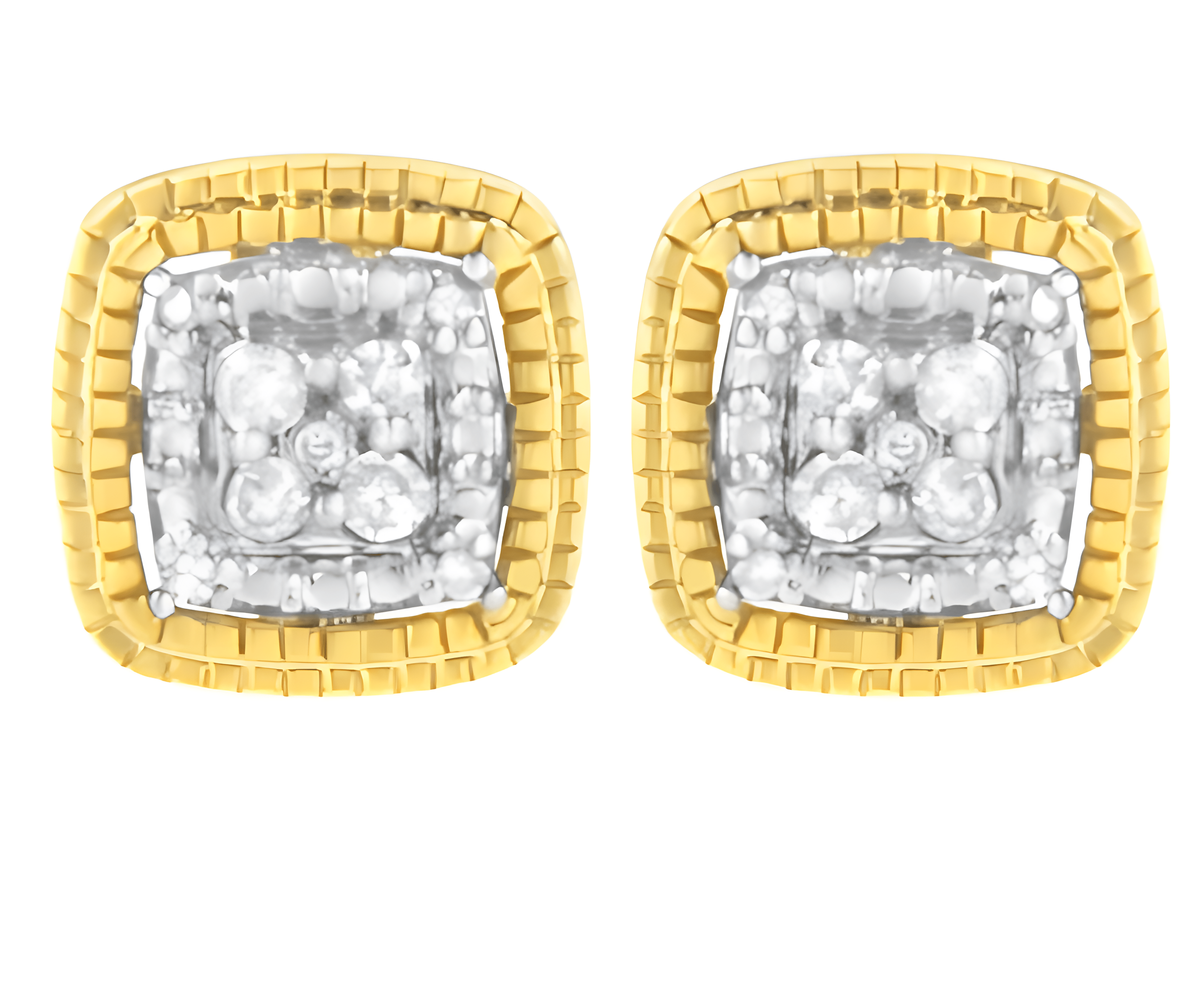 Crafted with precision, these earrings combine luxurious 10k yellow gold plating with high-quality sterling silver, creating a captivating contrast. With a total diamond weight of 1/10 carat, they provide a subtle yet brilliant sparkle that enhances any outfit, making them a perfect choice for any occasion.