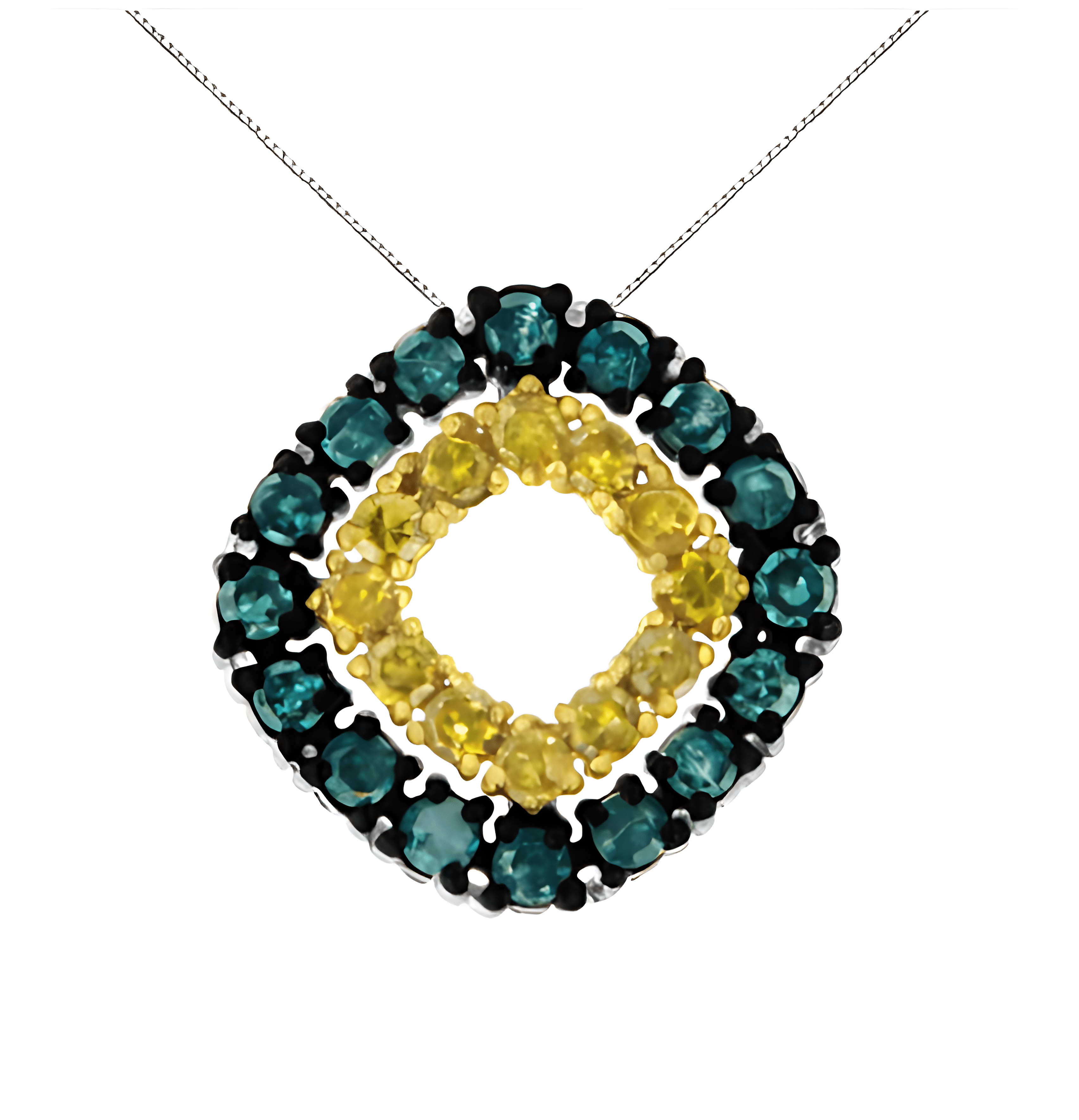 .925 Sterling Silver 1/2 Cttw Treated Blue and Yellow Diamond Double Square 18" Pendant Necklace (Blue/Yellow Color, I2-I3 Clarity)
