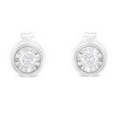 .925 Sterling Silver 1/5 Cttw Round Brilliant-Cut Near Colorless Diamond Miracle-Set Bezel Barrel Style Stud Earrings (I-J Color, I2-I3 Clarity)
