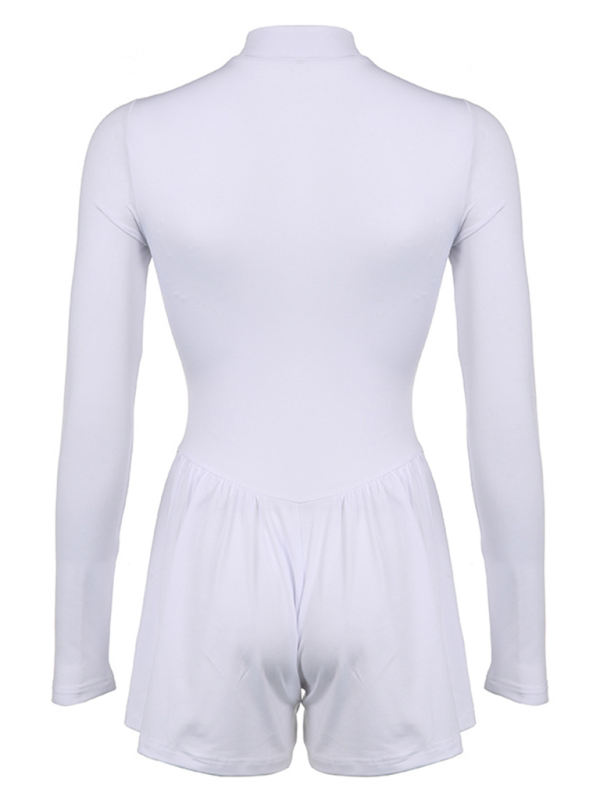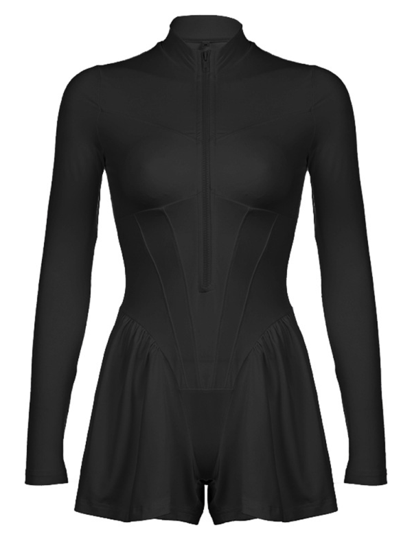 Fashion women's solid color casual sportswear zipper wide-leg jumpsuit shorts