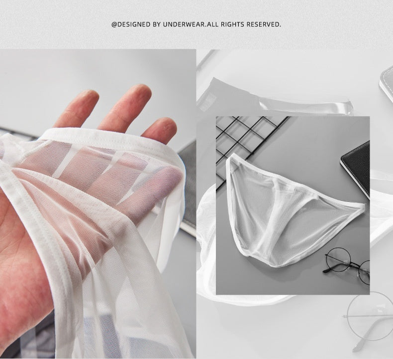 Men's Full Mesh Transparent Belt Thin Low Waist Breathable Briefs